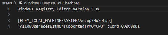 Hent filen Windows11BypassCPUCheck